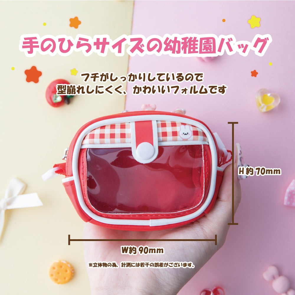小さいなお人形やぬいぐるみなどを可愛く持ち歩けるようちえんバッグです。